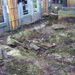 STEP.2 基礎工事を行います。地面を掘り下げる際に、土の中も綺麗にします。